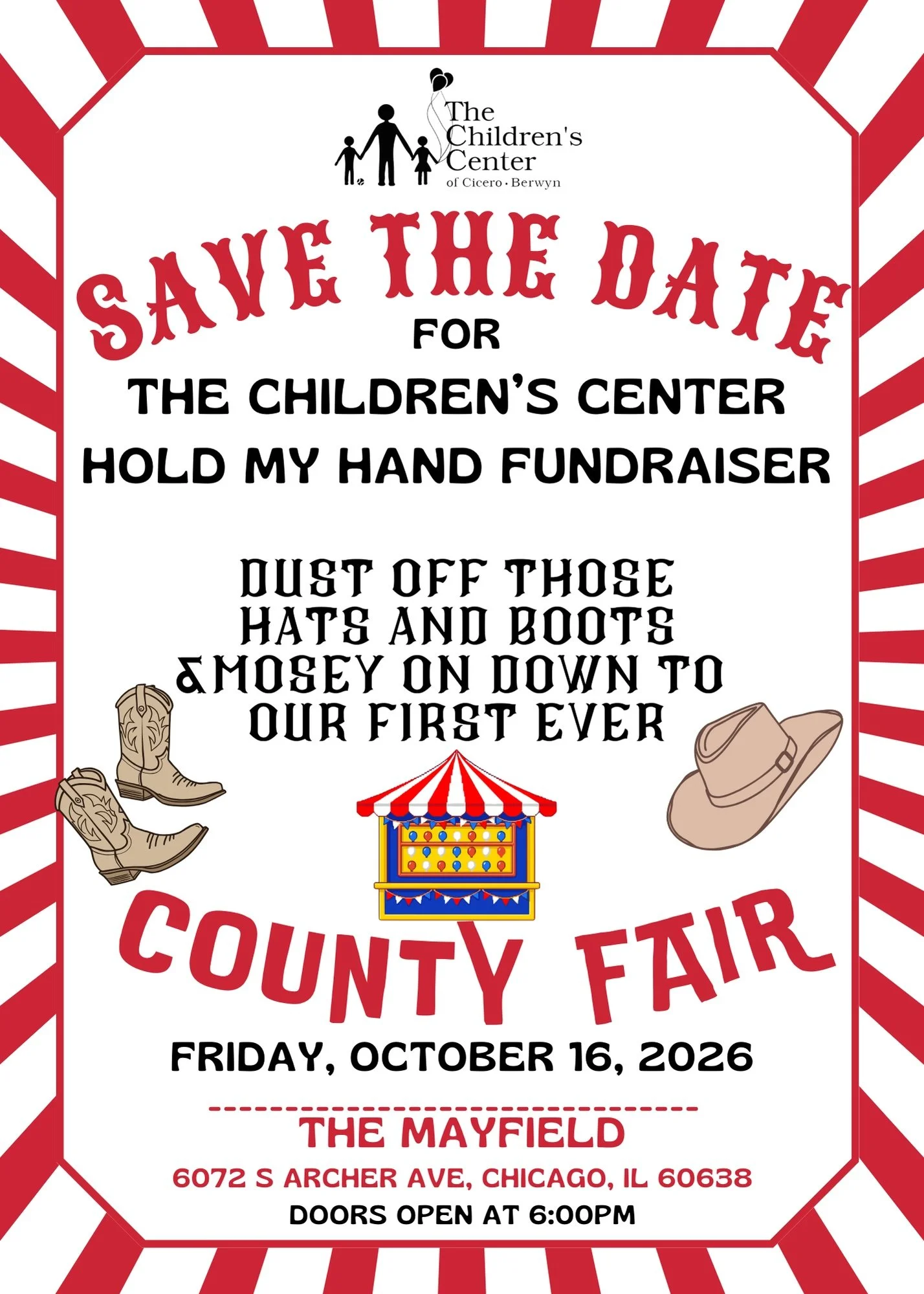 Mark your calendar for our 48th Annual “Hold My Hand” fundraiser on Friday, October, 16, 2026! The Children’s Center of Cicero-Berwyn will host this year’s dinner and fundraising event at The Mayfield on Archer Ave.